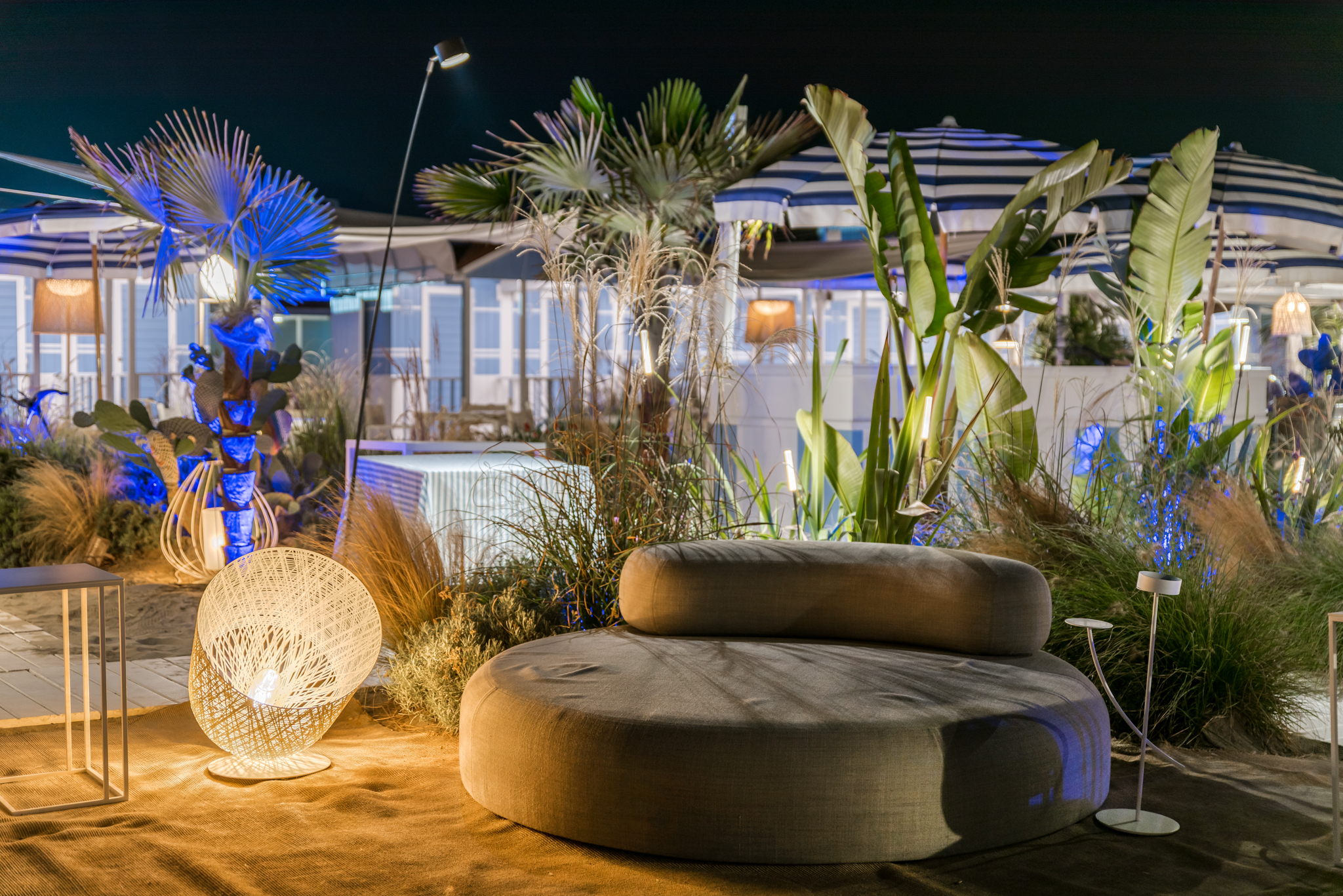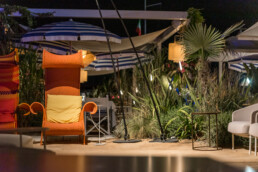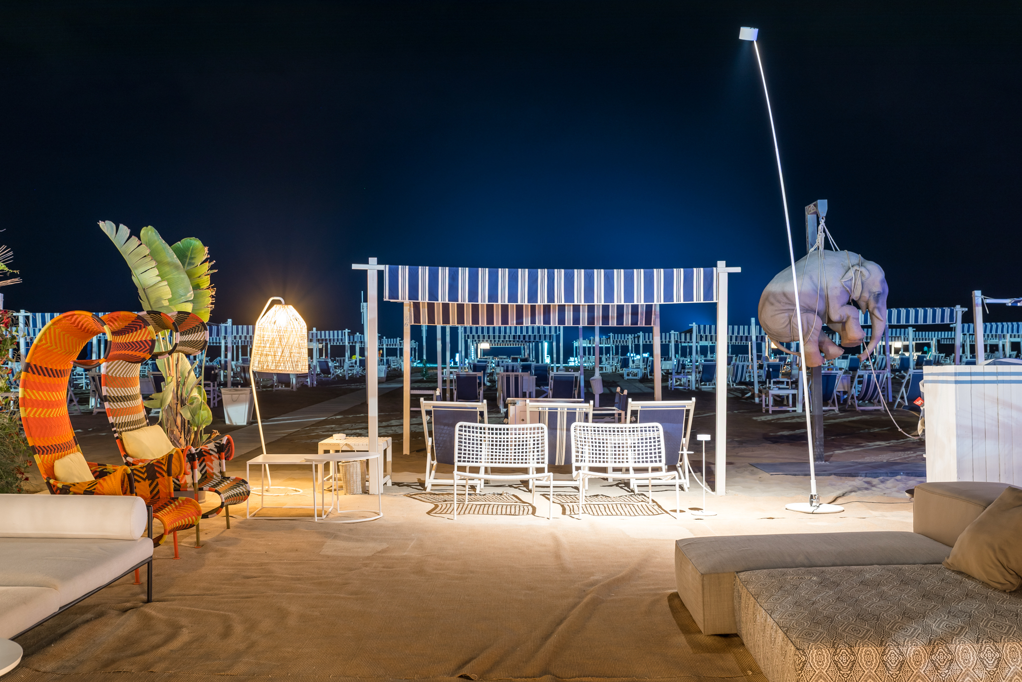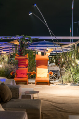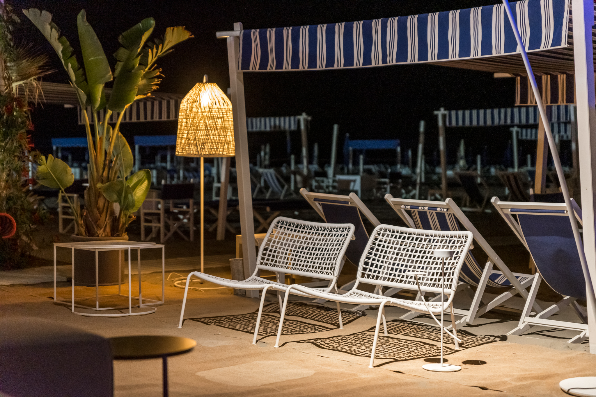 Michele Vitaloni designer, progettista di Charmitaliastudio, ha dato vita alla sua visione del Maitò, storico ed iconico stabilimento balneare e ristorante di Forte dei Marmi. Michele Vitaloni ha creato un luogo unico, dove si perde la concezione del tempo e dello spazio. Questa importante collaborazione con Naldi Illuminazione, sia per la consulenza che per la fornitura, ha permesso di mettere in risalto ed enfatizzare le scelte progettuali, sottolineando segni e linee, disegnando ombre sfumate di colori.